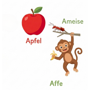 Lies das Wort laut vor. Beginnt es mit A oder D? Ziehe es in die richtige Spalte!